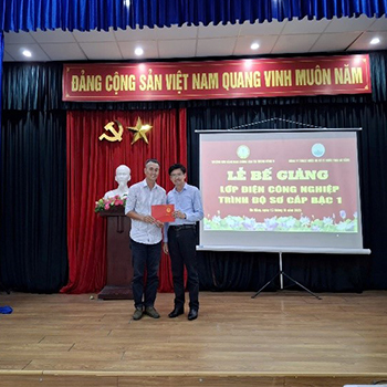 Hình 6: Ông Đoàn Việt Hùng – Phó Hiệu trưởng Trường Cao đẳng GTVT Trung ương V chúc mừng các học viên hoàn thành khóa học