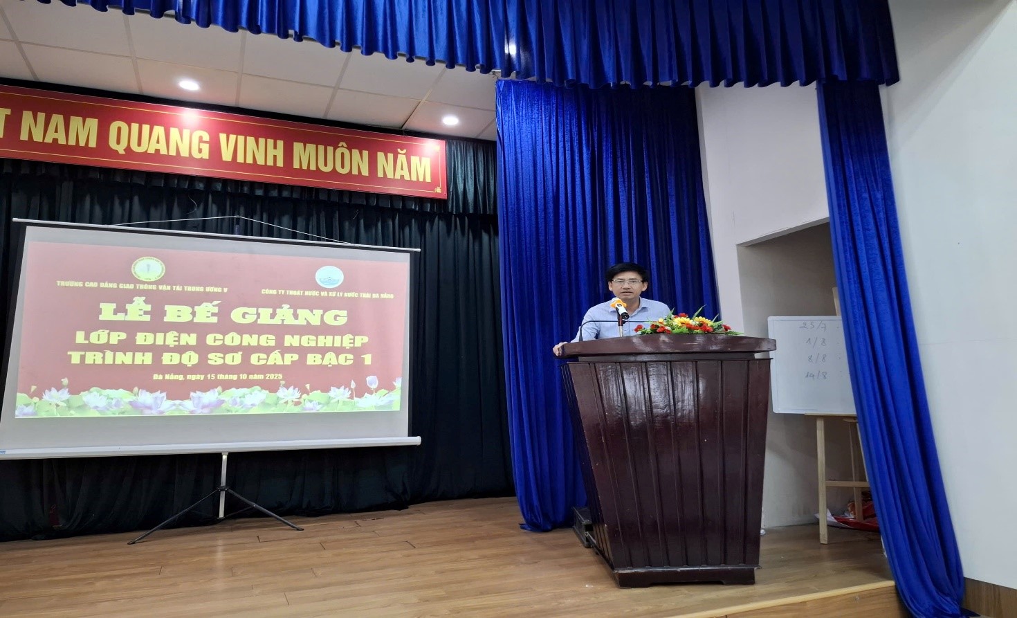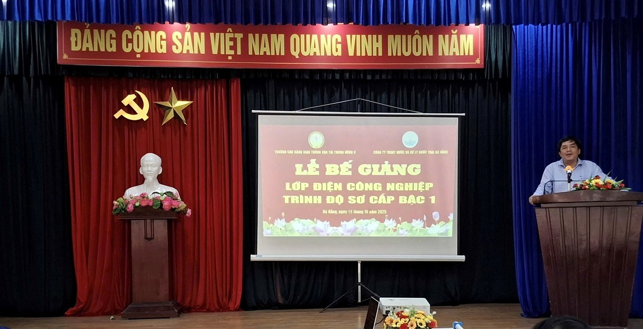 Chiều ngày 15 tháng 10 năm 2025, Công ty Thoát nước và Xử lý nước thải Đà Nẵng đã phối hợp cùng Trường Cao đẳng Giao thông vận tải Trung ương V tổ chức Lễ Bế giảng và trao chứng chỉ cho các học viên tham gia Lớp đào tạo Điện công nghiệp, trình độ sơ cấp bậc 1 (SC25ĐC1). Buổi lễ đánh dấu sự kết thúc thành công của một hành trình học tập và rèn luyện đầy ý nghĩa, góp phần nâng cao trình độ chuyên môn cho đội ngũ người lao động của Công ty.