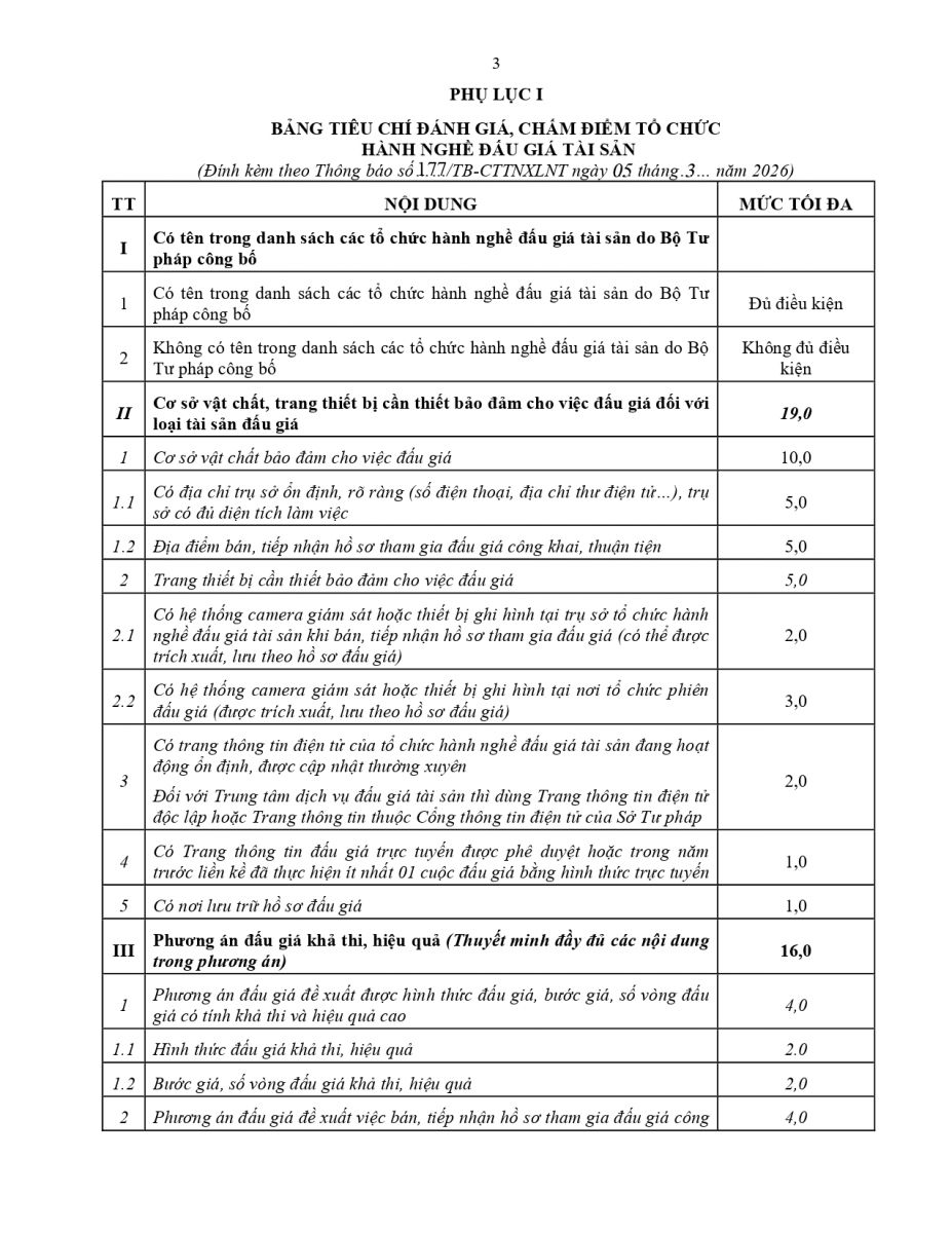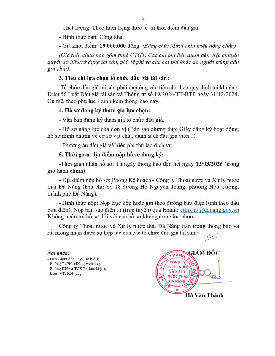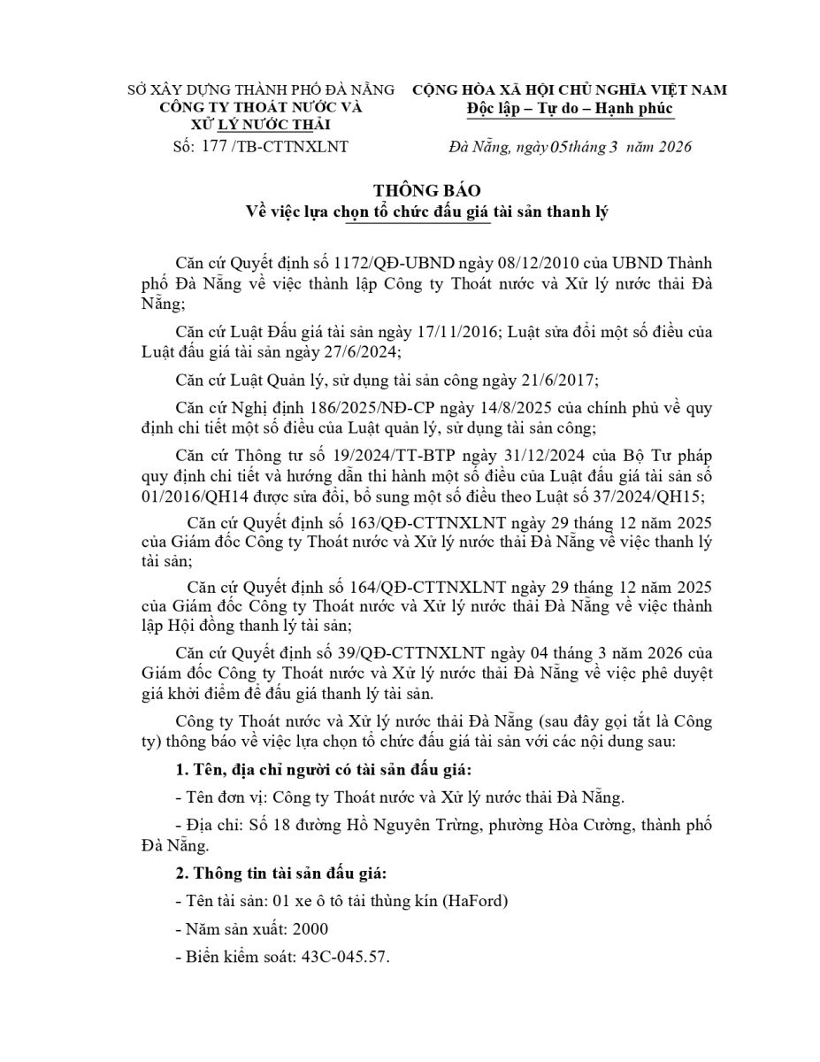 Thông báo lựa chọn tổ chức đấu giá tài sản thanh lý